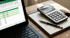 Mann mit Jackett und Hemd hält eine Rechnung vor einem Computermonitor mit einer Excel-Tabelle.
